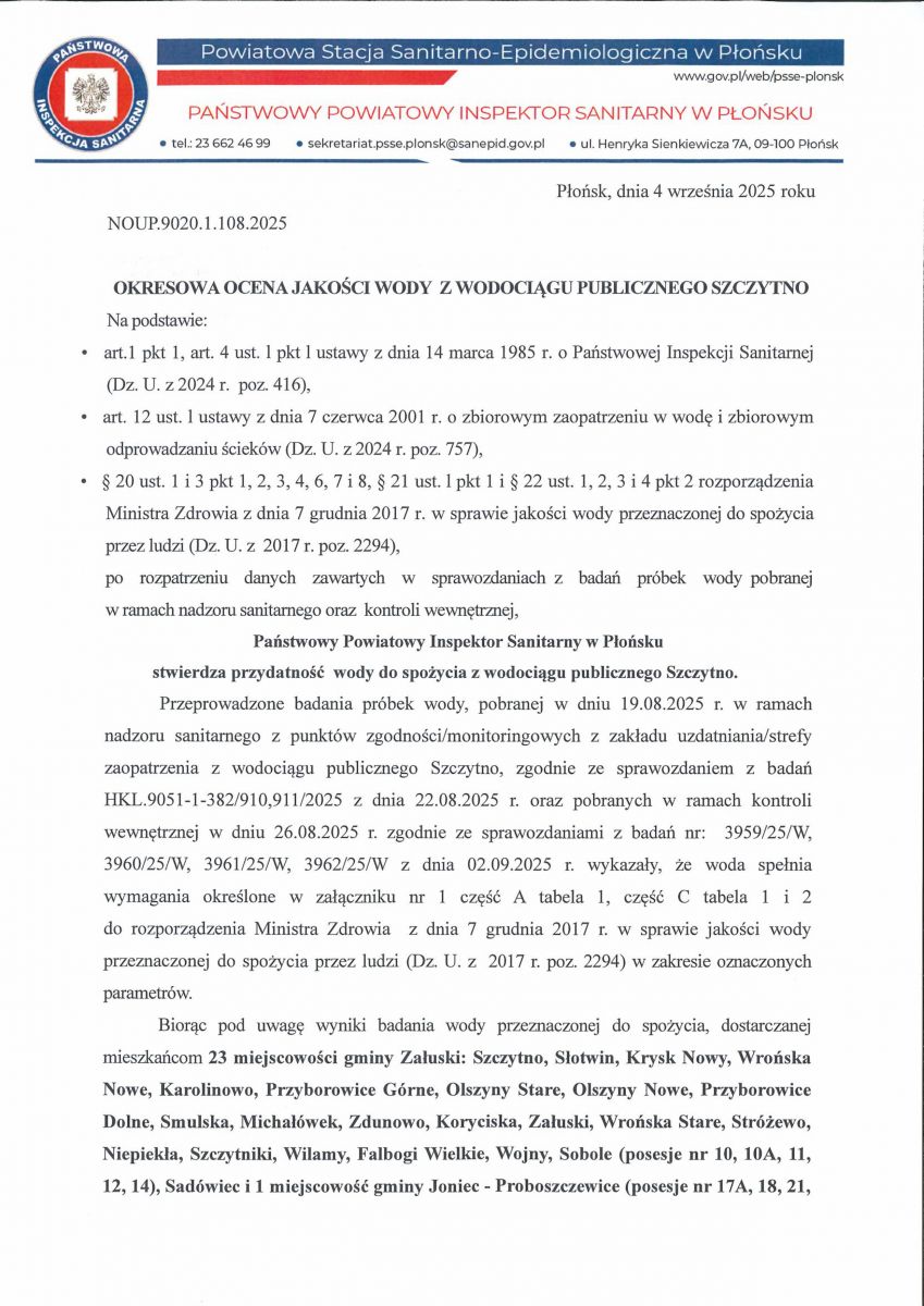 KOMUNIKAT DLA MIESZKAŃCÓW PROBOSZCZEWIC