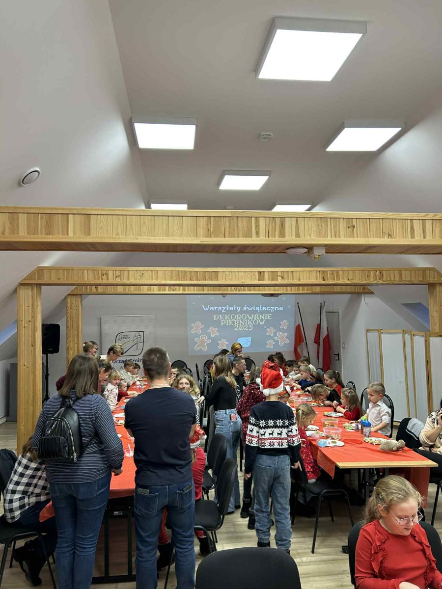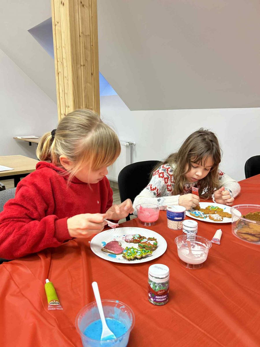 Podczas spotkania najmłodsi własnoręcznie dekorowali pierniki, tworząc barwne ozdoby, które zabrali ze sobą na choinkę lub jako upominek dla bliskich.