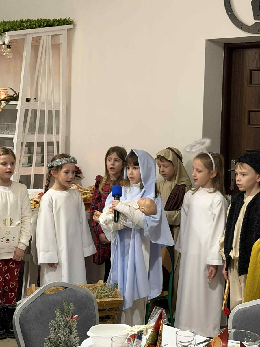 Uczniowie ze Szkoły Podstawowej w Królewie przygotowali wyjątkowy występ artystyczny, a następnie wspólnie z seniorami odśpiewali tradycyjne kolędy, wprowadzając wszystkich w świąteczny nastrój.