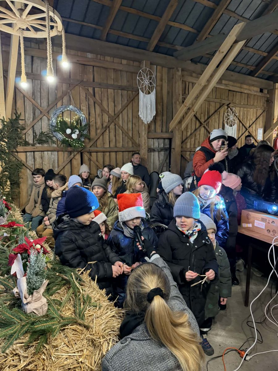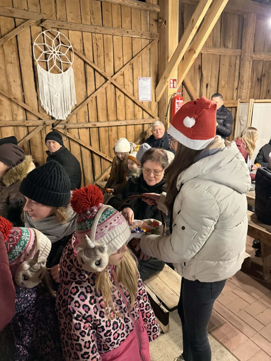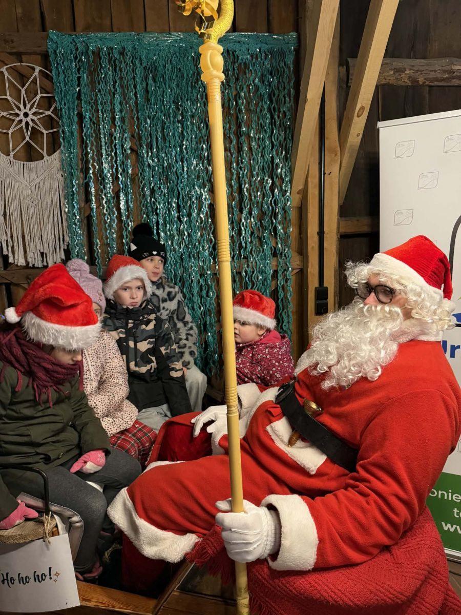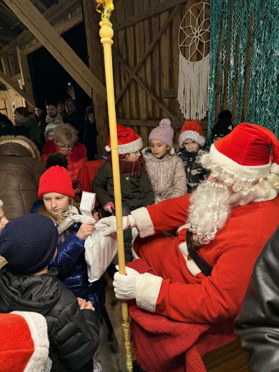 Na zakończenie pojawił się Święty Mikołaj z drobnymi upominkami dla dzieci, wywołując wiele uśmiechów i radości.