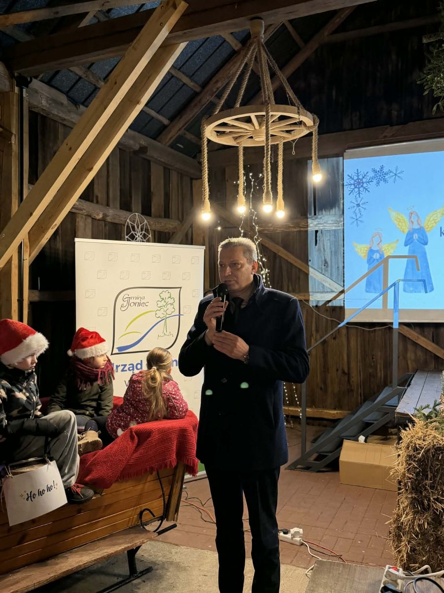 Wójt Gminy Joniec, Marek Czerniakowski, przywitał wszystkich zgromadzonych i złożył serdeczne życzenia z okazji nadchodzących Świąt Bożego Narodzenia.