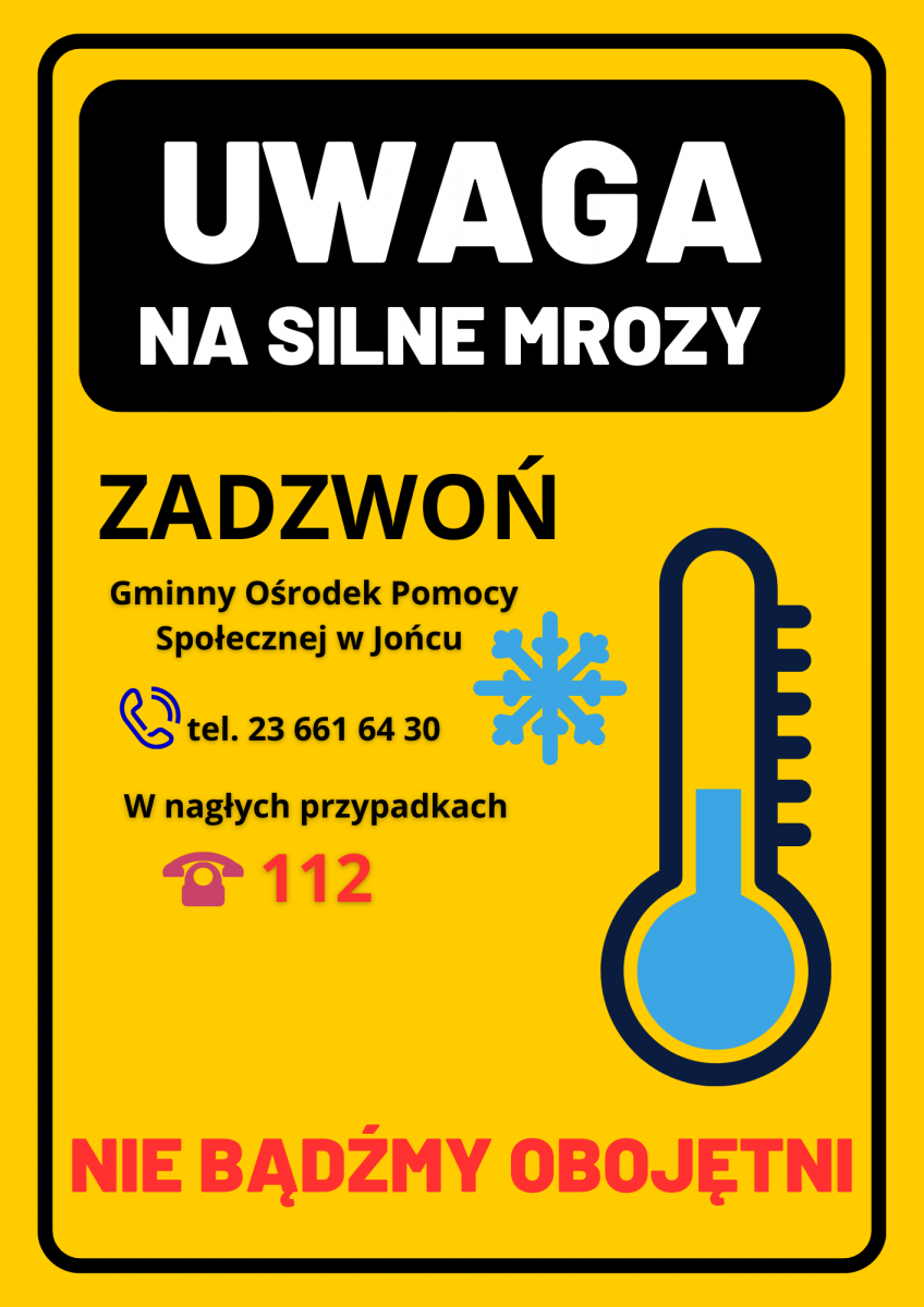 W związku z występującymi trudnymi warunkami atmosferycznymi, w szczególności silnymi mrozami, zwracamy się z apelem do wszystkich mieszkańców o zachowanie szczególnej ostrożności oraz wzajemną troskę.