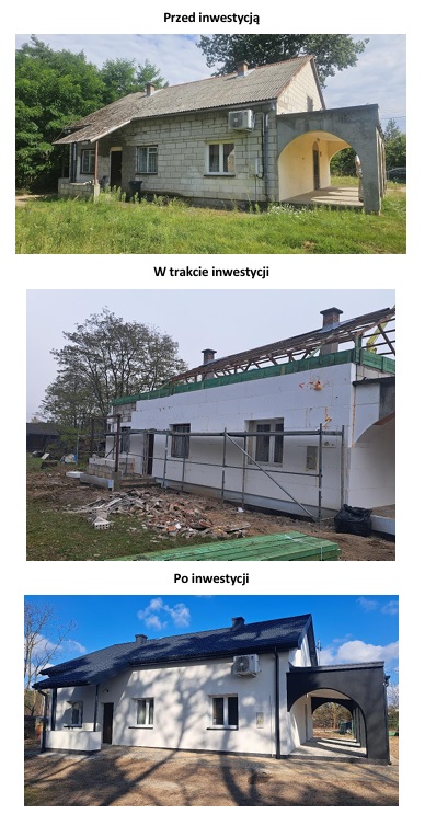 W ramach realizacji przedsięwzięcia Gmina Joniec wykonała m.in. następujące prace i roboty: wymieniono części okien i drzwi zewnętrznych, wymieniono więźbę i pokrycie dachowe, ocieplono ściany, strop i fundamenty, wykonano wieniec opaskowy, przemurowano szczyty.