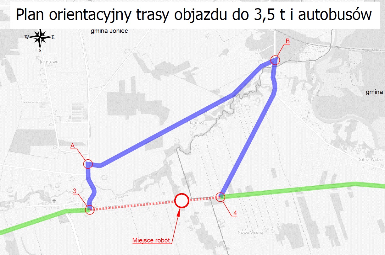 Poniżej plan orientacyjny objazdów